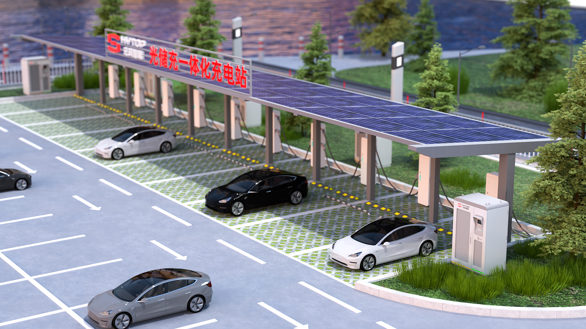 解决新能源汽车充电站配电容量不足的问题,利用夜间低谷电价进行储能,在充电高峰期通过储能和市电一起为充电站供电,满足高峰期用电需求,既实现了削峰填谷又节省了配电增容费用,增加新能源的消纳,弥补了光伏发电不连续性的不足。